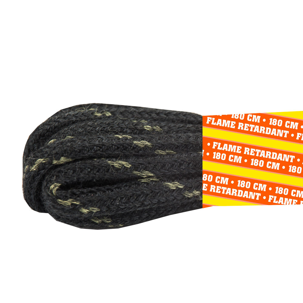 Schwarze, flammhemmende, runde Schnürsenkel. Größe: 180 cm.
