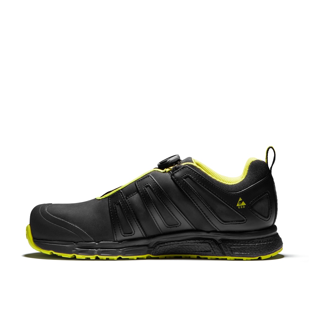 Venture from SOLID GEAR is a durable, lightweight, and sporty safety shoe. Thanks to revolutionary ETPU technology, the midsole offers unlimited cushioning and comfort. The more power you put in, the more you get back. This technology is now also available in a black version. A TPU-reinforced full-grain leather upper, combined with the Boa® Fit System, ensures an excellent fit and superior protection. SOLID GEAR's innovative NANO toe cap is 40% harder than fiberglass and lighter and thinner than other non-metallic toe caps. PU Foam Sock Technology ensures first-class comfort, while the SRC slip resistance rating ensures maximum slip resistance on a variety of surfaces. ESD function according to BS EN 61340-4-3:2002.