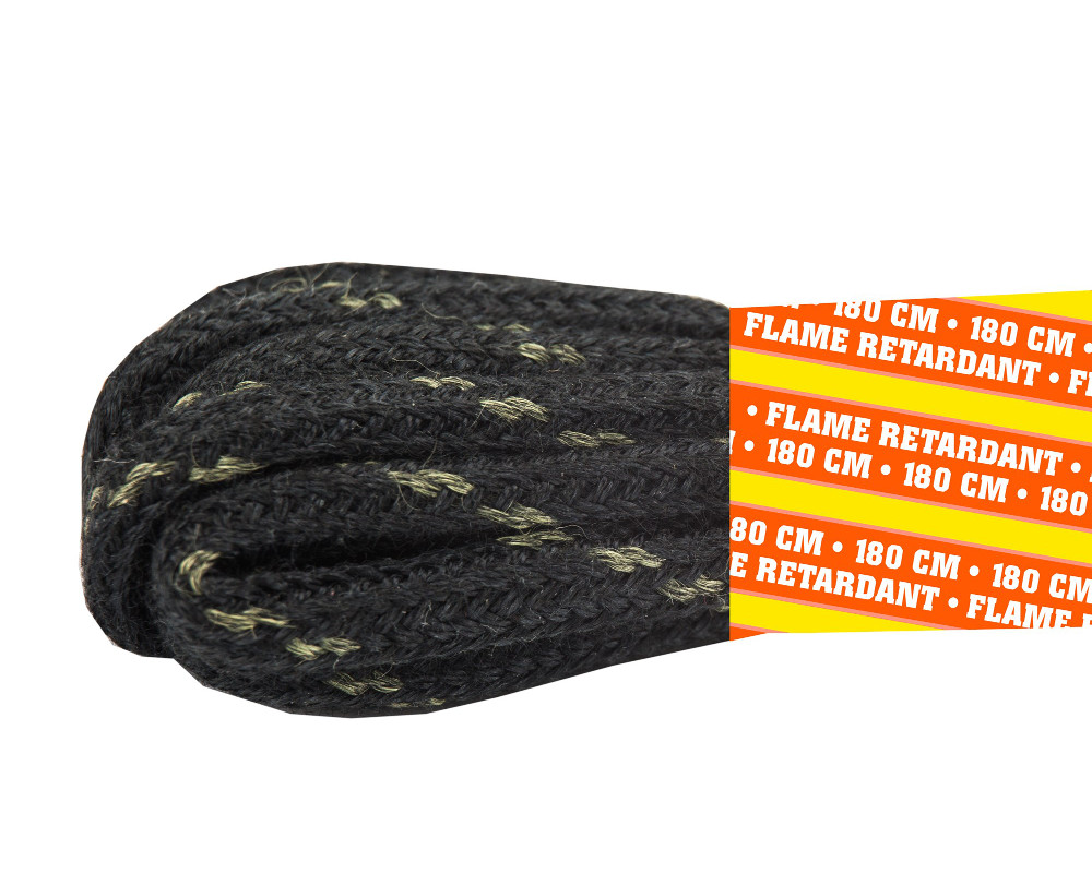 Schwarze, flammhemmende, runde Schnürsenkel. Größe: 180 cm.