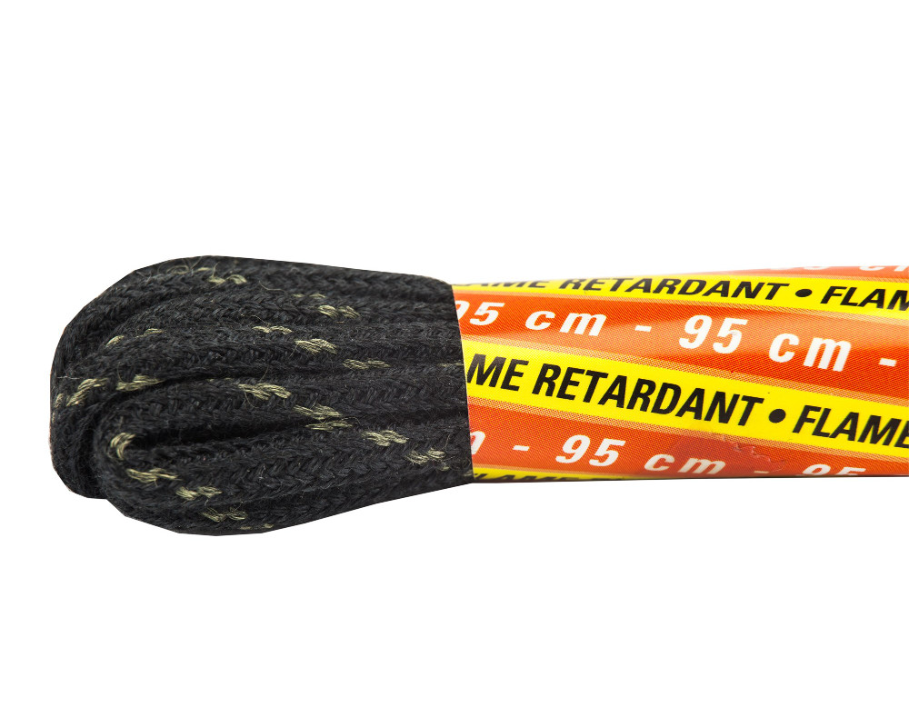 Schwarze, flammhemmende, runde Schnürsenkel. Größe: 95 cm.