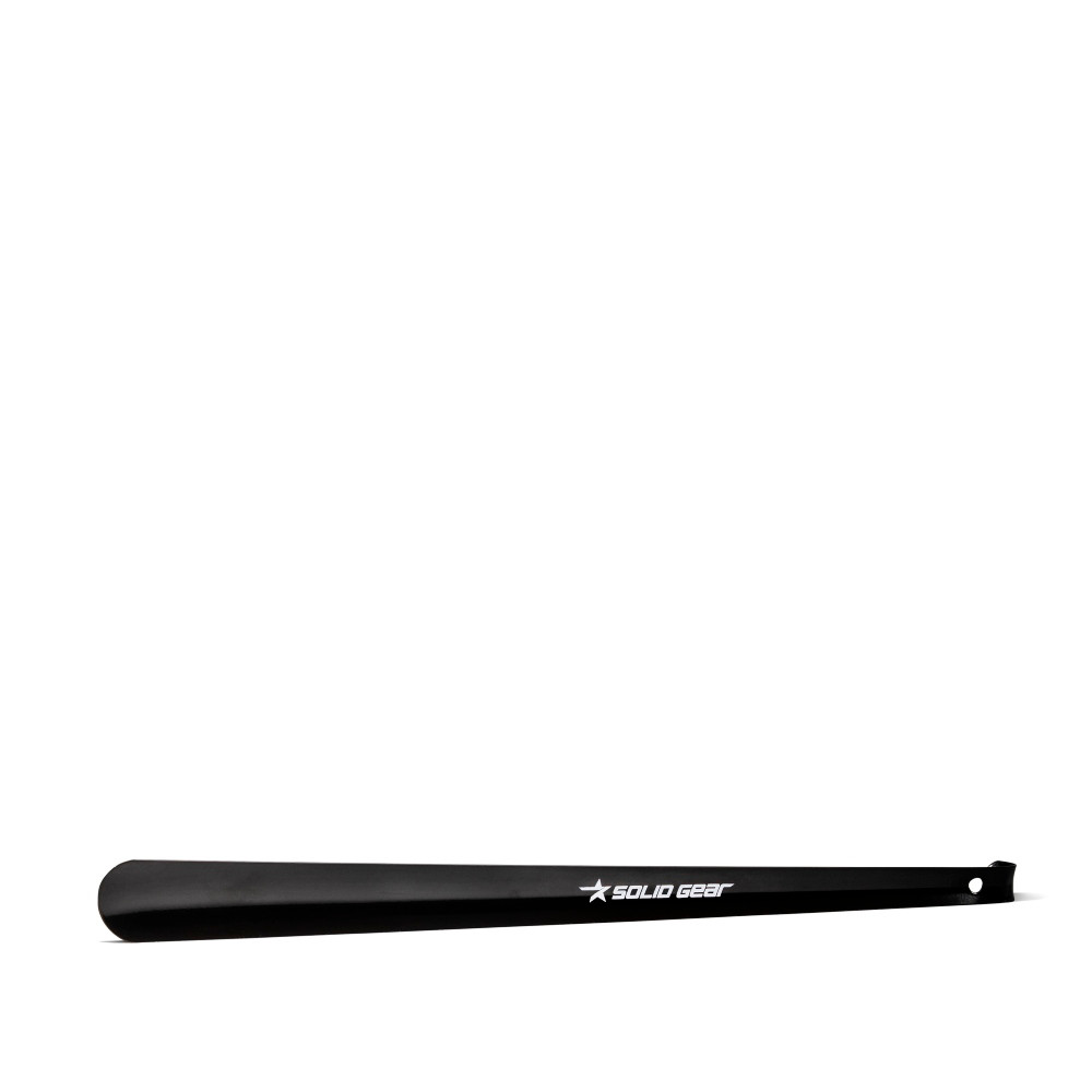 Schuhlöffel schwarz aus Metall mit Solid Gear Logo. Länge: 580 mm.
